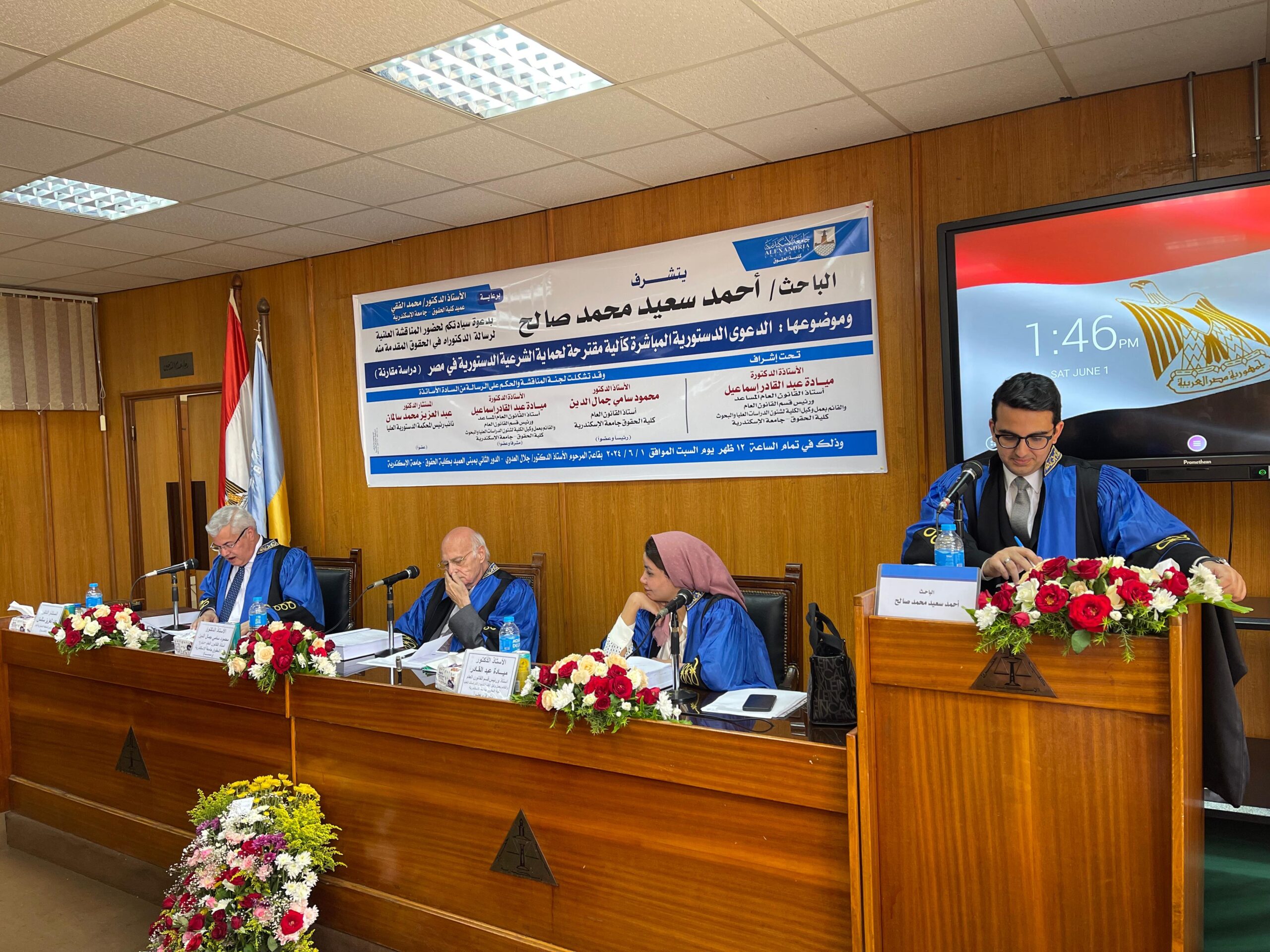 بعد إتمام مناقشة رسالة الدكتوراه بكلية الحقوق بجامعة الإسكندرية، تمكن الباحث القاضي أحمد سعيد محمد صالح من تقديم مقترح مهم لتعزيز الشرعية الدستورية في مصر. وقد أثارت الدراسة اهتمام اللجنة العلمية وحصلت على تقدير الامتياز.