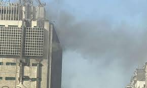 اندلع حريق صباح اليوم الإثنين داخل مبنى سنترال رمسيس في شارع الجمهورية بمنطقة وسط البلد في القاهرة.