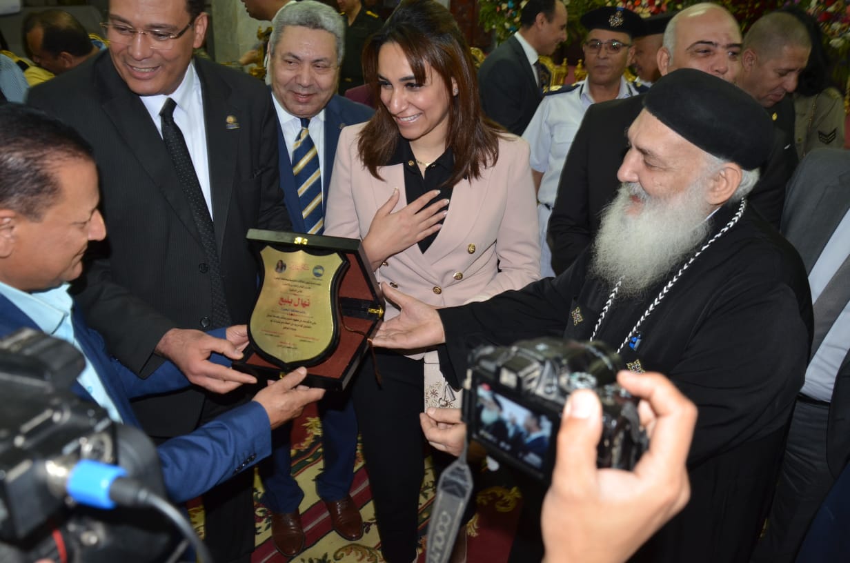 رافقها خلال تقديم التهنئة بعيد القيامة المجيد للإخوة المسيحين بالكنيسة الإنجيلية اللواء محمود هويدى