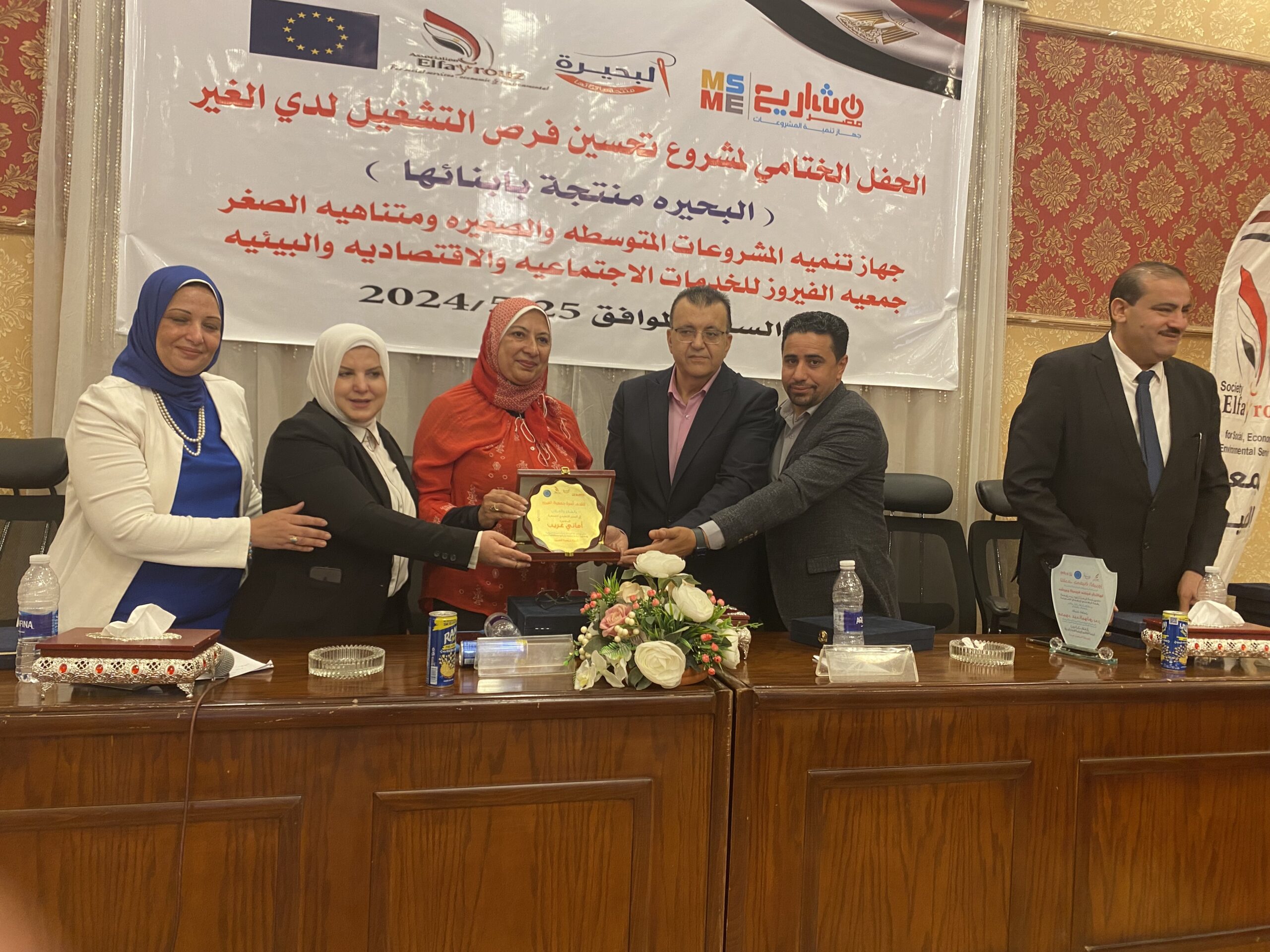 تم اليوم وضمن احتفال اختتام فاعليات مشروع البحيرة منتجة بابنائها الذي اقامته جمعيه الفيروز بقيادة الدكتورة اماني غريب رئيس مجلس ادارة و بحضور الدكتورة فايزه زايد وكيل وزارة التضامن والاستاذ سيد نصار مدير فرع تنمية المشروعات بالبحيرة والاستاذ محمود بدر والاستاذه نيفين صبحي نائب رئيس مركز ايتاي البارود والاستاذ مفرح عبد الله رجل الاعمال