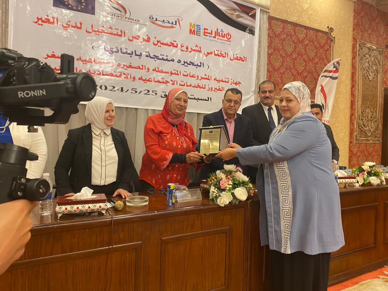 تم اليوموضمن احتفال اختتام فاعليات مشروع البحيرة منتجة بابنائها الذي اقامته جمعيه الفيروزبقيادة الدكتورة اماني غريب رئيس مجلس ادارة و بحضور الدكتورة فايزه زايد وكيل وزارة التضامن والاستاذ سيد نصار مدير فرع تنمية المشروعات بالبحيرة والاستاذ محمود بدر والاستاذه نيفين صبحي نائب رئيس مركز ايتاي البارود والاستاذ مفرح عبد الله رجل الاعمال