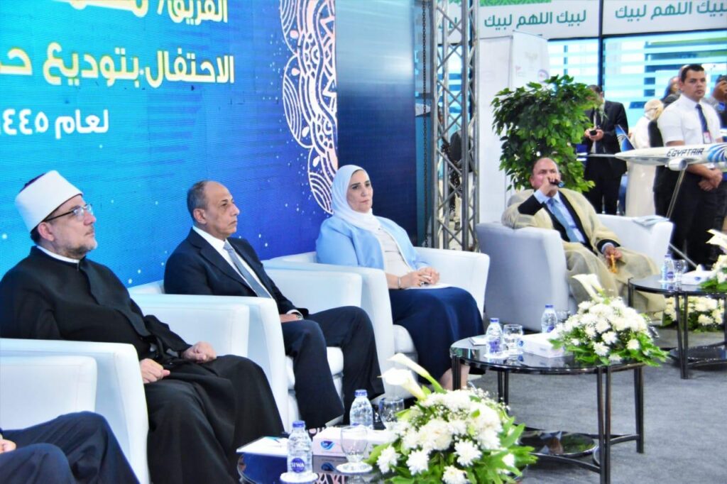 في إطار الاحتفالات المباركة التي تحرص وزارة الطيران المدني من خلال شركاتها التابعة بإقامتها بشكل دوري كل عام تزامنًا مع إنطلاق رحلات موسم الحج على متن رحلات الشركة الوطنية مصر للطيران، وفي أجواء سادتها مشاعر الفرحة والبهجة، شهد الفريق محمد عباس حلمي وزير الطيران المدنى والدكتور محمد مختار جمعة وزير الأوقاف والدكتورة نيفين القباج وزيرة التضامن الإجتماعي واللواء مصطفى حسين مساعد وزير الداخلية للشئون الإدارية ورئيس بعثة الحج الرسمية؛ احتفالية توديع الأفواج الأولى لحجاج بيت الله الحرام لأداء مناسك الحج لهذا العام 1445هـ /2024 م من مبنى الرحلات الموسمية بمطار القاهرة الدولى، وذلك بحضور لفيف من قيادات وزرات الطيران المدنى والداخلية والتضامن الاجتماعى والأوقاف والجمارك والحجر الصحى.