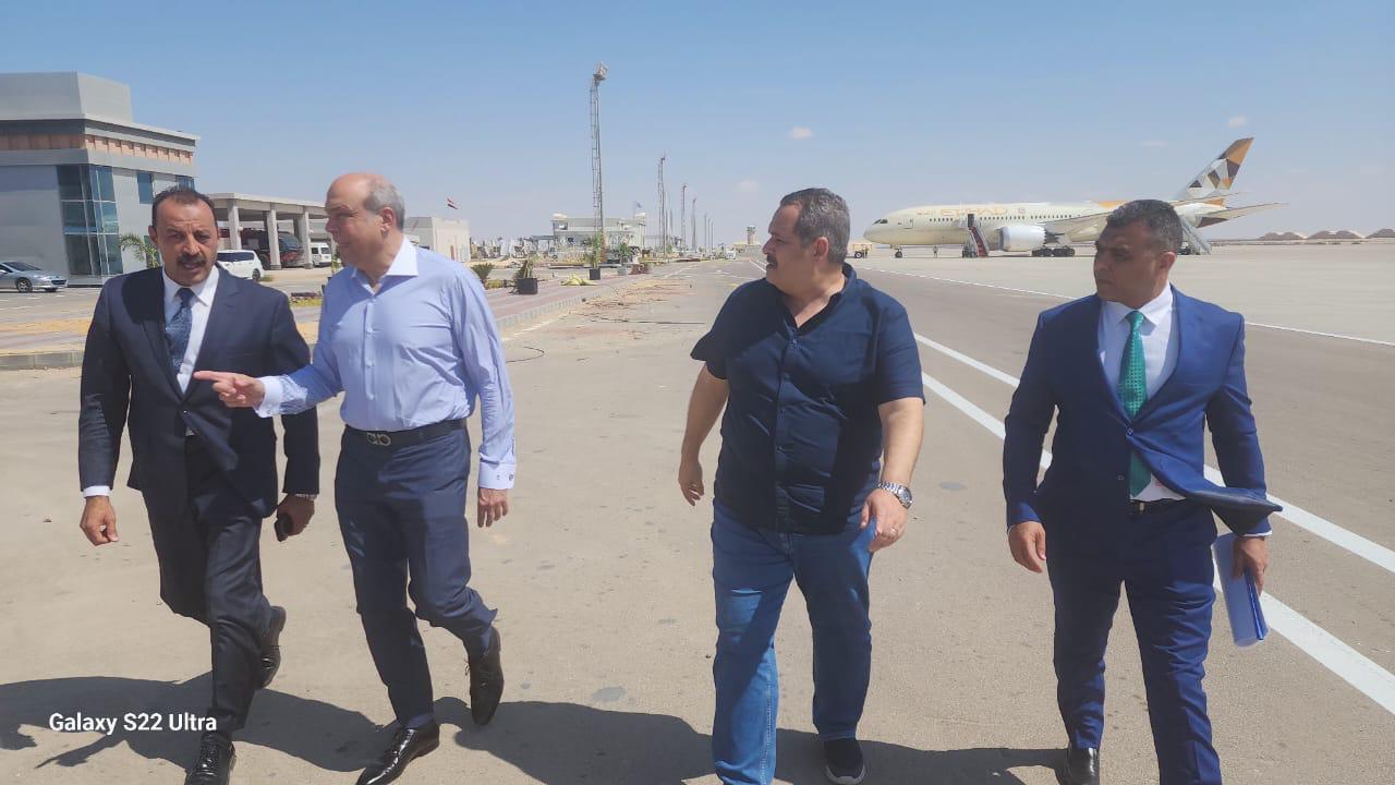 رافق سيادته خلال الجولة الطيار أحمد منصور رئيس مجلس ادارة الشركة المصرية للمطارات و اللواء شريف عبد الناصر مدير مطار العلمين .