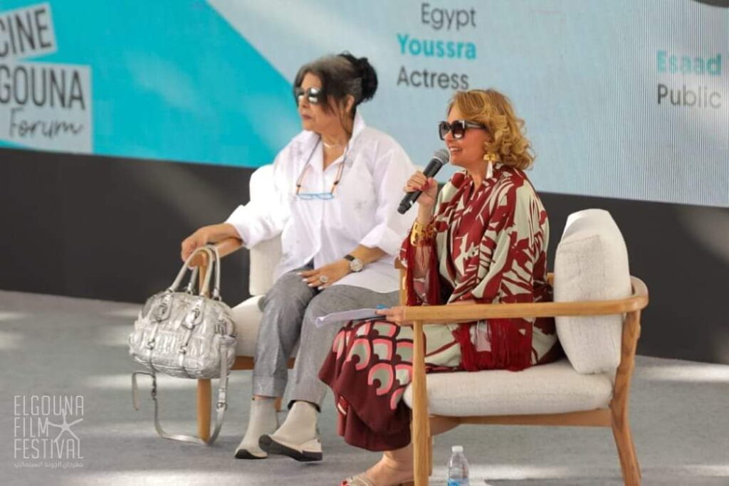 عقدت بمهرجان الجونة السينمائي جلسة نقاشية للفنانة والإعلامية والمنتجة إسعاد يونس، مع الفنانة الكبيرة يسرا.