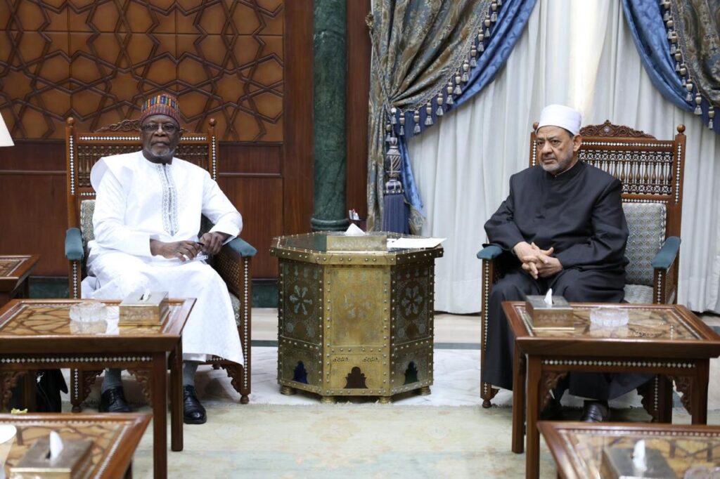 استقبل فضيلة الإمام الأكبر أ. د. أحمد الطيب، شيخ الأزهر الشريف، اليوم الأربعاء بمشيخة الأزهر، السيد بكاري ياو سانجاري، وزير خارجية النيجر؛ لبحث سبل تعزيز الدعم الأزهري -العلمي والدعوي- لمسلمي النيجر، ومناقشة سبل تعزيز التعاون المشترك لتحقيق أهداف السلام والتسامح في النيجر.