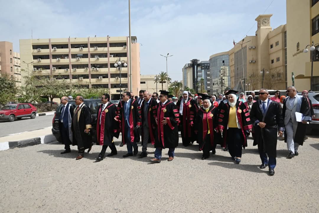 الجدير بالذكر أن طابور العرض انطلق من أمام المكتبة المركزية، وصولًا إلى مبنى إدارة الجامعة، وذلك تمهيدًا لاستكمال مراسم الاحتفالية، اليوم الأربعاء الموافق ٢٠٢٥/٤/٩.