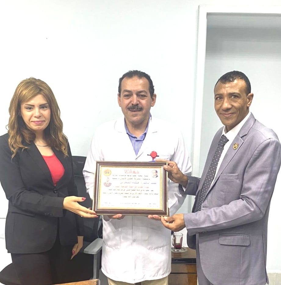 وقدم ا. عادل رئيس اللجنة شهادة تقدير من الفئة الشرفية الممتازة لدكتور هشام تقديرا لمجهوداته الرائعة